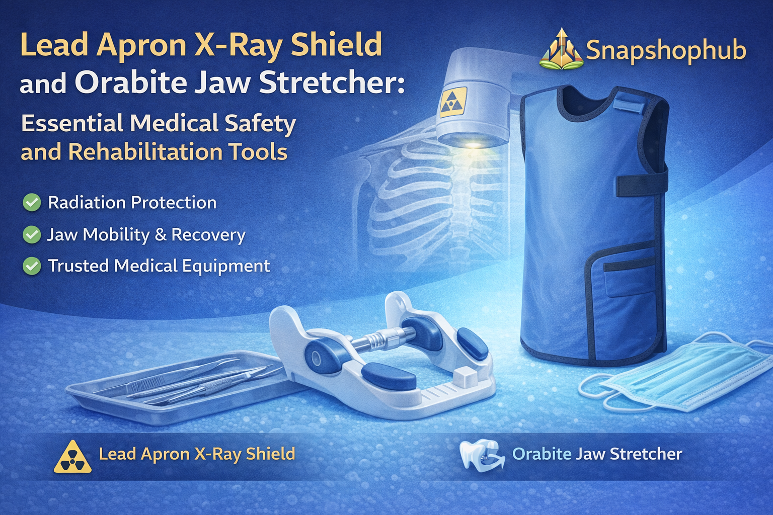 The safety of patients through the use of specialized medical equipment which protects patients from hazards while helping them recover from medical procedures represents an essential component of modern healthcare. The Lead Apron X-Ray Shield and the Orabite Jaw Stretcher function as vital medical equipment which protects patients during treatment and helps them recover after treatment.